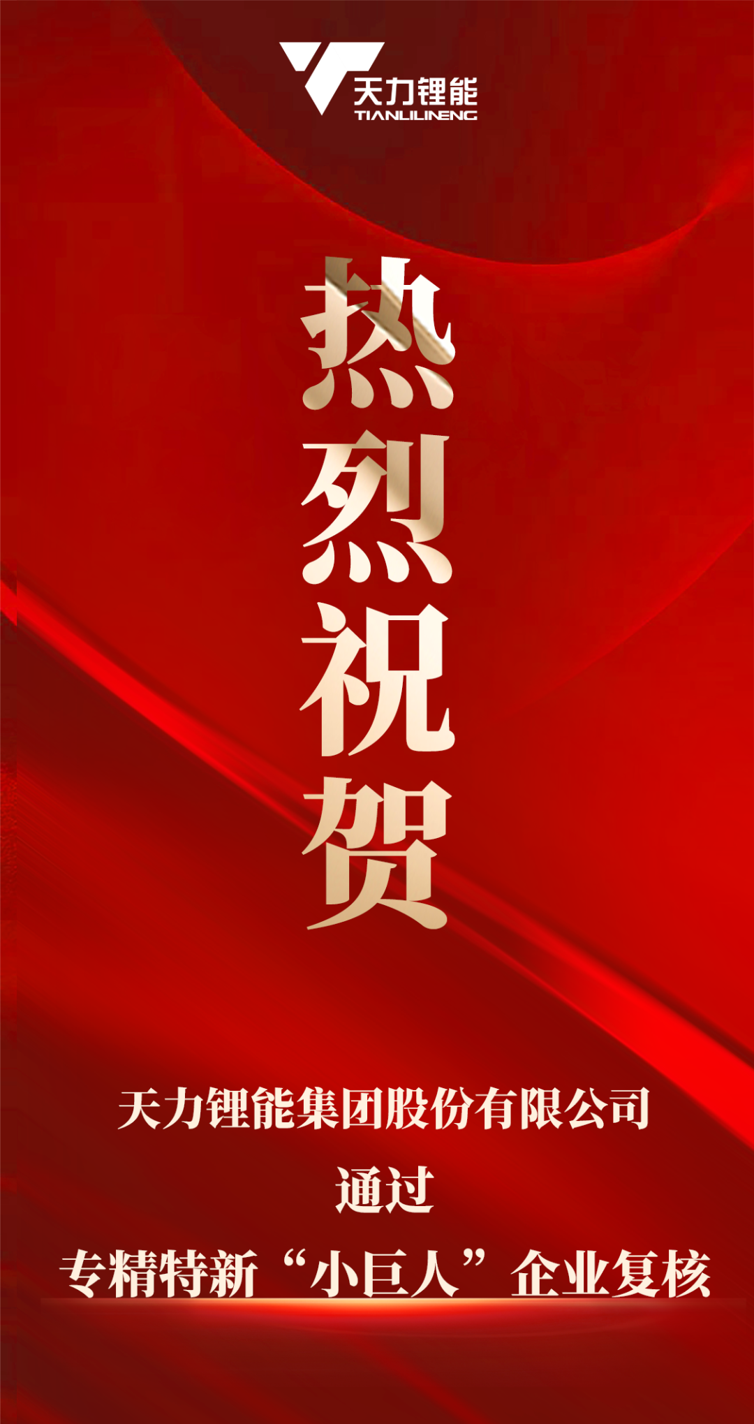 天力锂能(301152)集团股份有限公司凭借卓越的创新能力与深耕锂电领域的专业实力,成功通过专精特新“小巨人”企业复核!这标志着公司在核心技术、市场地位及可持续发展方面获国家高度认可。未来,天力锂能将继续以创新为引擎,赋能新能源产业高质量发展!
